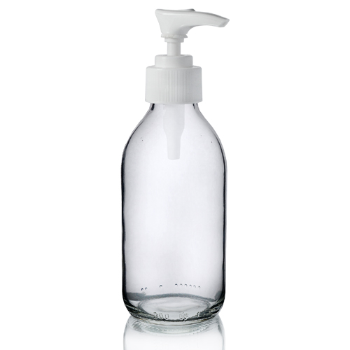Our 200ml clear glass sirop bottle with a 28mm standard lotion pump which is available in either black or white and are both lockable to prevent the pump being activated whilst in transit or in storage. A great bottle and cap option for a range of creams, lotions, body butters, hand soaps and shampoos.