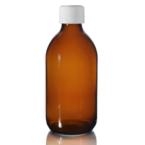 300ml Amber Glass Sirop Bottle & 28mm White Medi-loc Cap